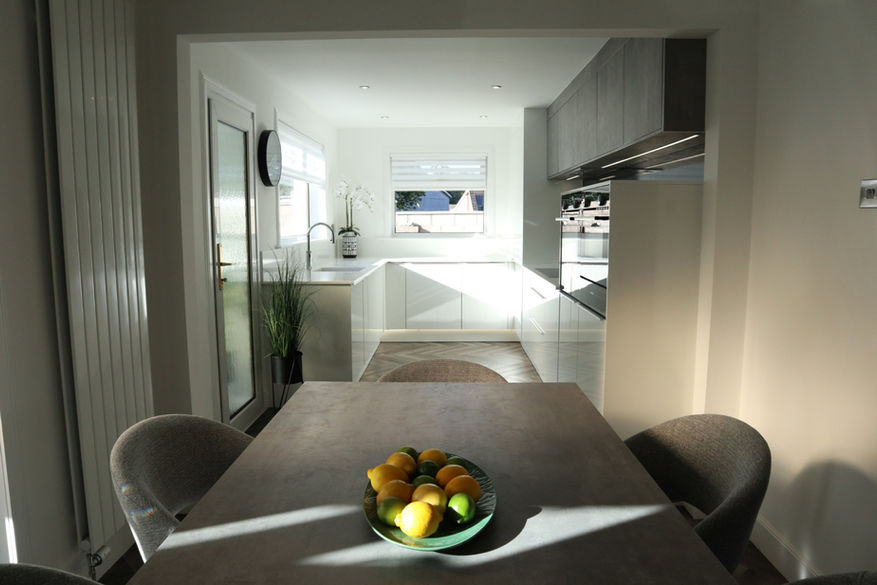 To maximize the available space, These clients made the strategic decision to block up an internal doorway between their kitchen and hallway. Allowing greater design flexibility, uninterrupted countertop space, and a more cohesive flow through all three kitchen, dining and living areas.